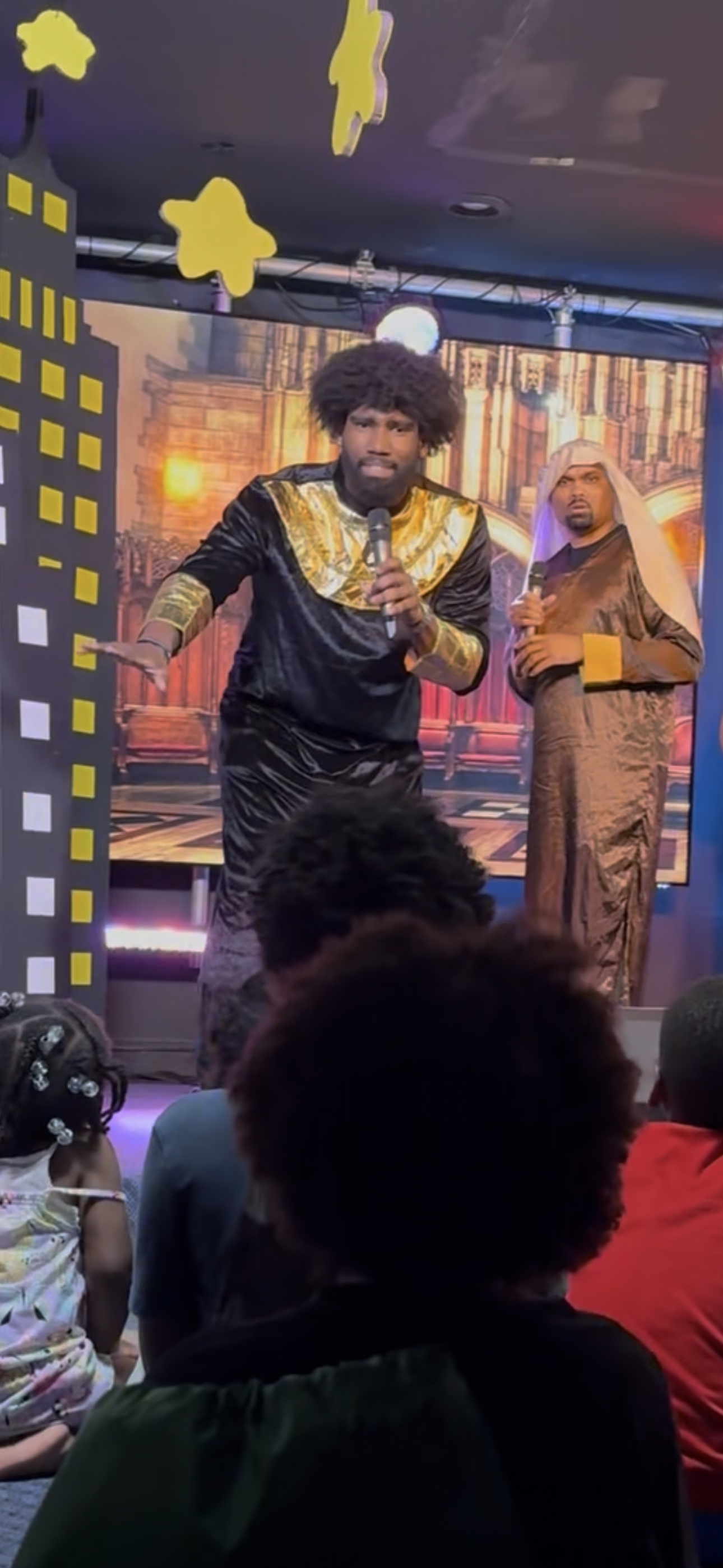 I grew up in church, then walked away from God. I experienced what the world had to offer, only to find myself in the pig pen, with nothing but slop—until I decided to return home. I even have a poetry book titled Prodigal Son (coming soon). But to play that very character on the final day of VBS? That was a full-circle moment—one I’m deeply thankful for, even if it ended with my face covered in “pig slop” (whipped cream mixed with apples, blueberries, and bananas).